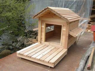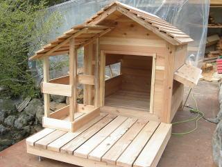 国産材を使ったデッキの完成です。外材に比べ腐り難い。このデッキに塗装をするとも一つ長持ちします。 外飼いの場合食器に雨が降り込み水浸しに成りませんか 食器があっちこっちに行きませんか そんな方に食器入れを作りました。